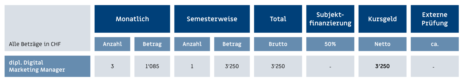 Weitere Informationen über die Kosten & Finanzierungen für den Digital-Marketing-Manager.